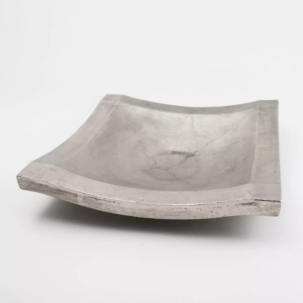 30×30 cm, korkeus 7cm. Kierrätysalumiinia.