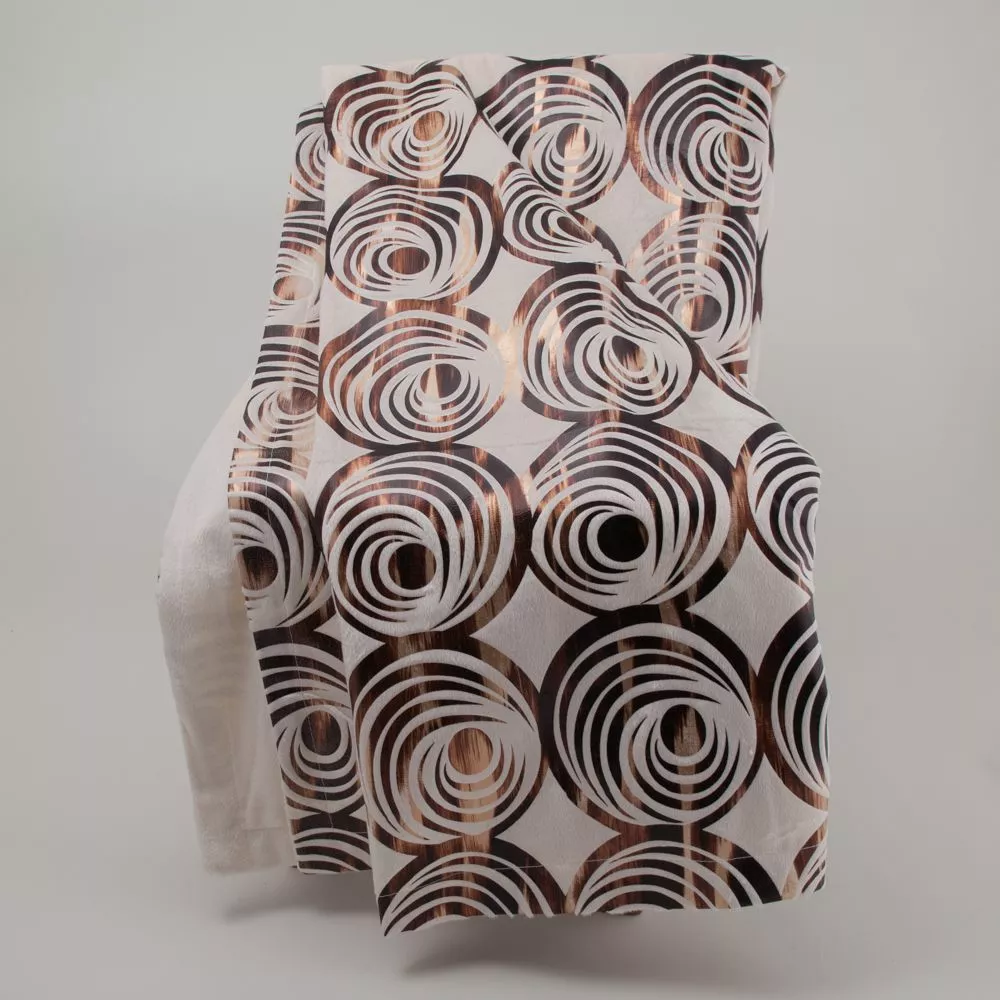 Päällä beige-kupari-kulta kuvio.