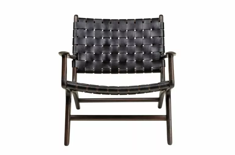 Runko tiikkiä ja punonta aitoa nahkaa.