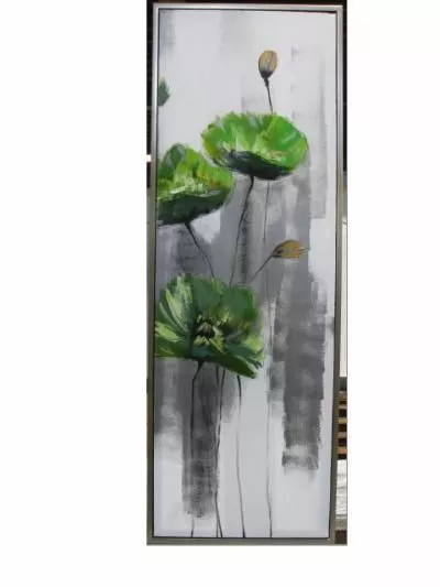 Kukkataulu hopeanvärisillä kehyksillä, koko 124x34cm. Öljyvärimaalaus.