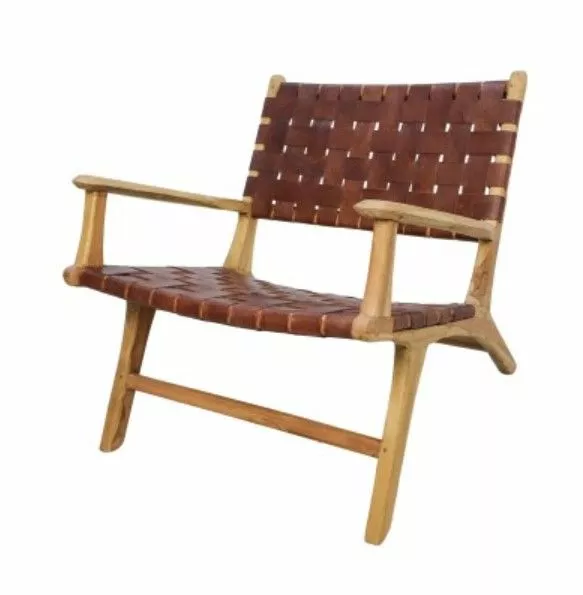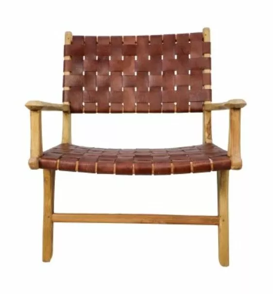 Tyylikäs nojatuoli, nahkapunoksilla, punoksissa ei ole satulavöitä alla tukena, siksi hinta on edullisempi kuin tuetussa Design versiossa.