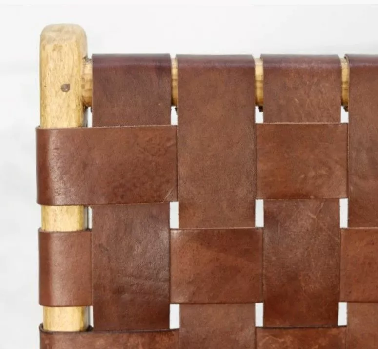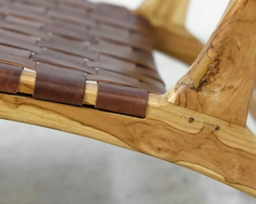 Runko tiikkiä ja punonta aitoa nahkaa.