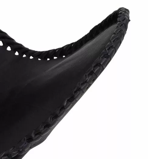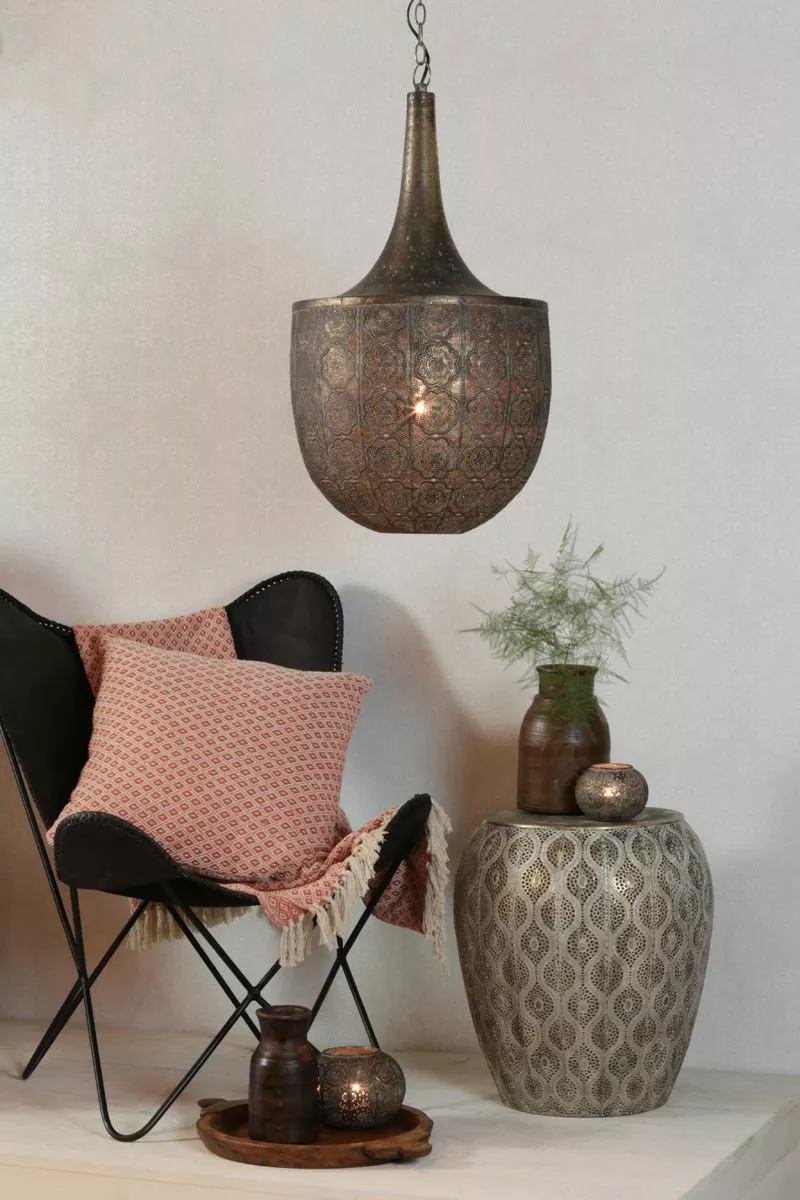 Mustanruskeaa nahkaa, runko mustaa metallia.
