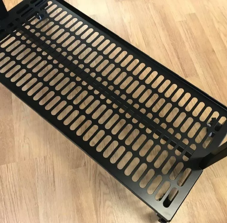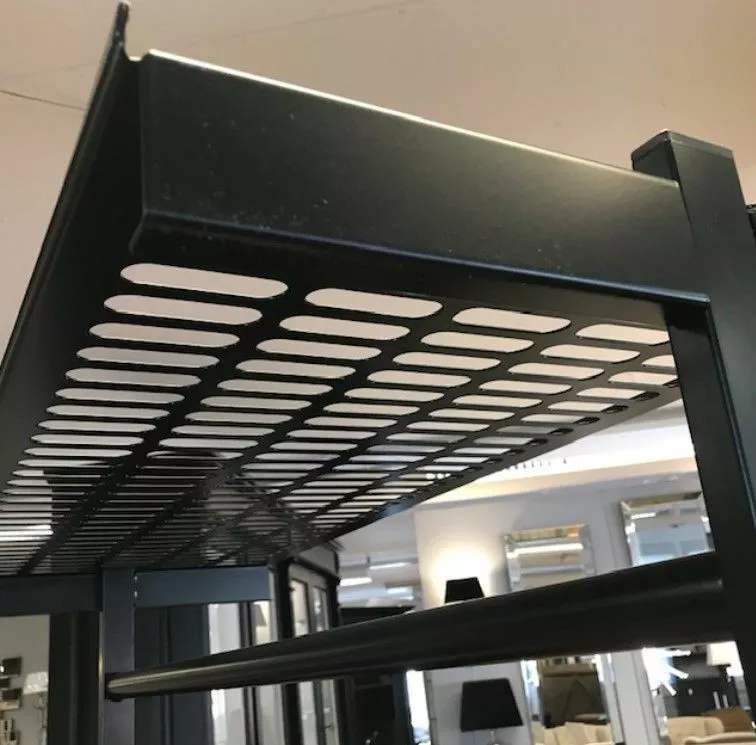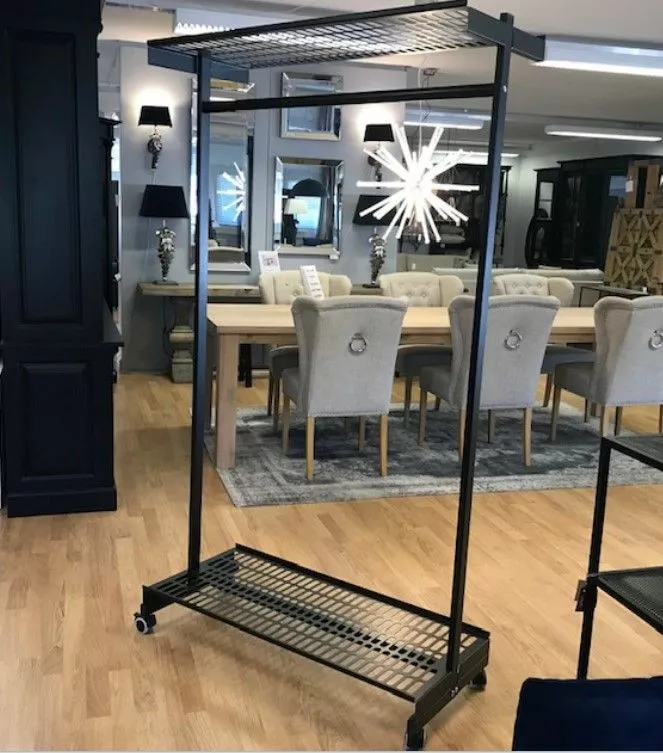 Pyörillä liikuteltava ja lukittava, hitsattua pulverimaalattua rautaa, puolikiiltävä musta maali.