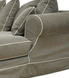 Huppuverhoilu, istuin- ja selkätyynyjen verhoilu vetoketjulla irroitettavissa.