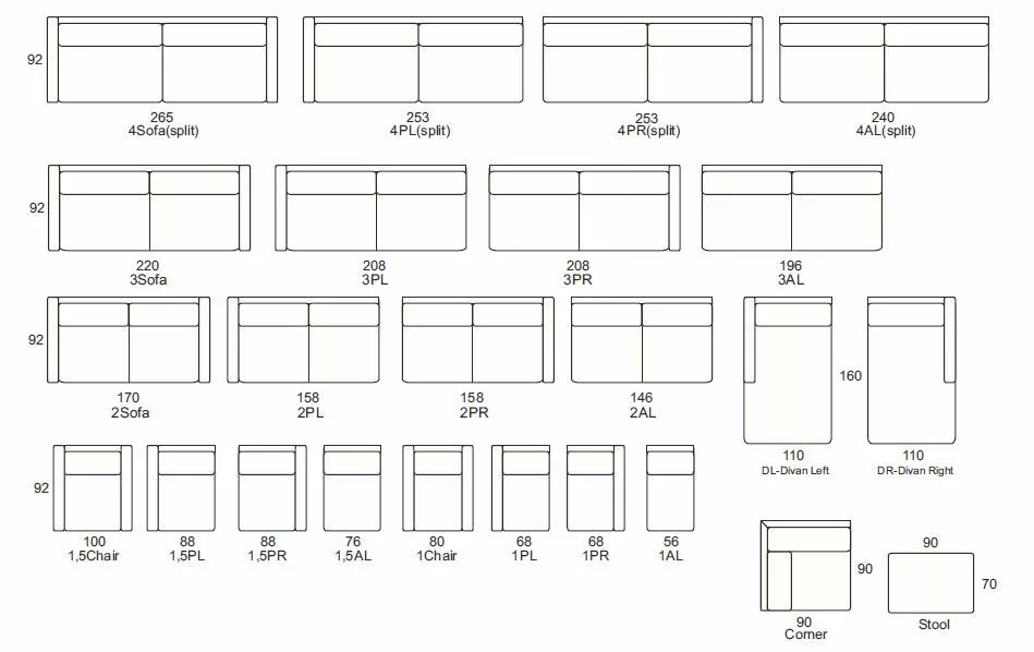 Sohvasarjasta voi rakentaa vaikka minkälaisia kokonaisuuksia yhdistämällä eri osia, katso moduulikartta.