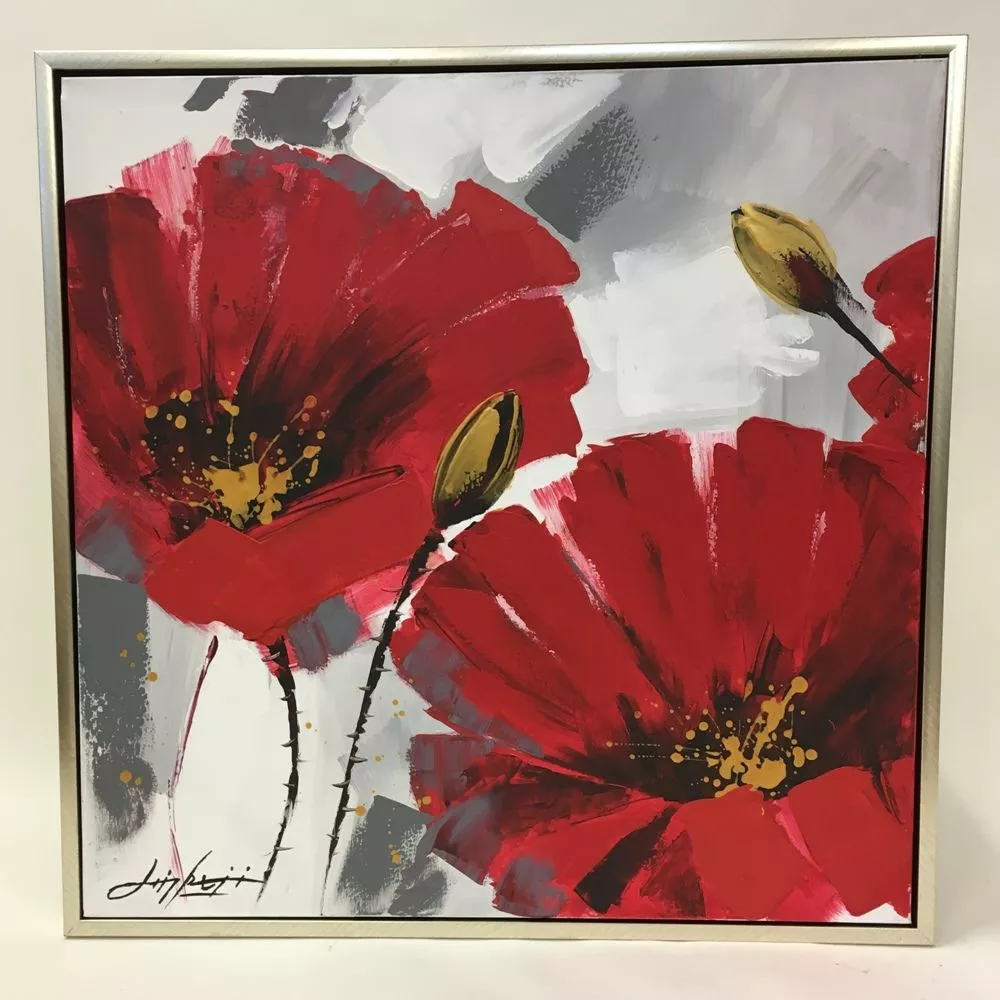 Unikkotaulu, öljyvärimaalaus, 85x85cm, ohut hopeanvärinen kehys.